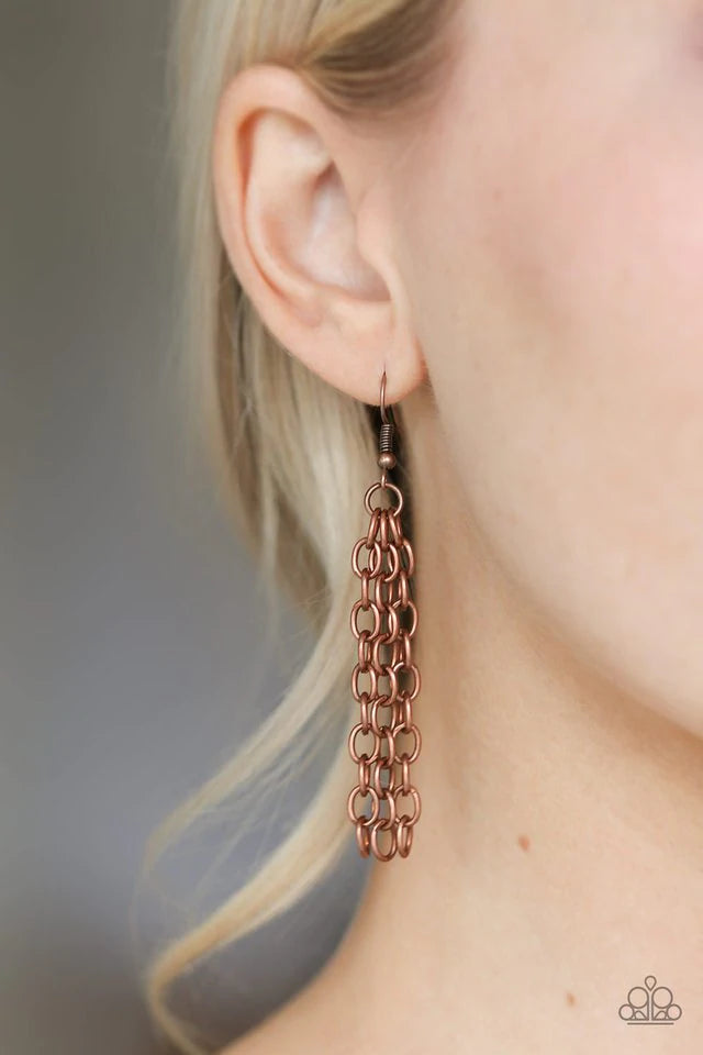 A collection of hammered copper plates connect into a dramatic half-moon pendant below the collar for a fierce look. Features an adjustable clasp closure. Sold as one individual necklace.