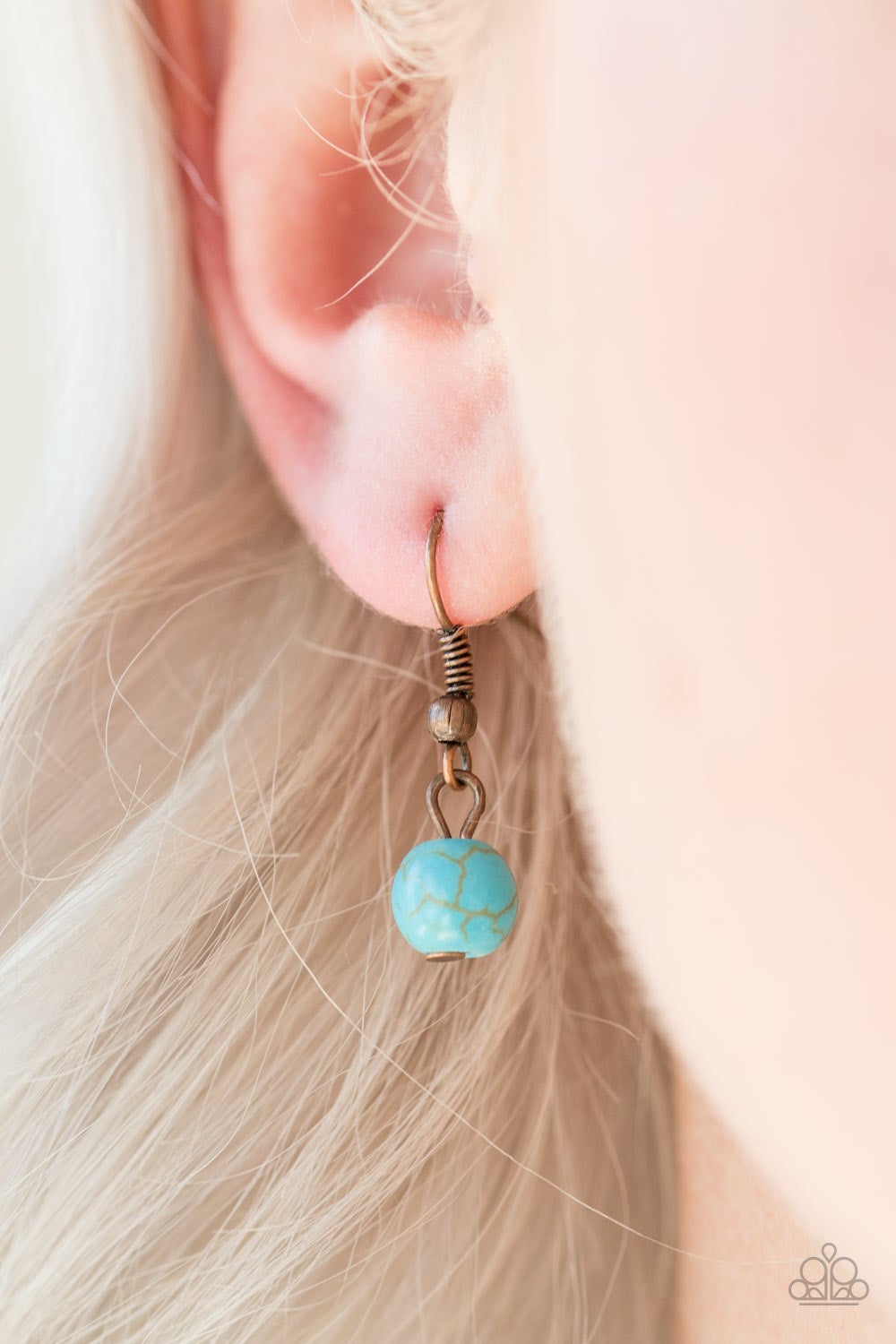 Chiseled into round and teardrop shapes, refreshing turquoise stones swing from the bottom of a bold double-linked copper chain below the collar. Embossed in studded details, shimmery copper teardrops drip between the stone beading, adding a tactile finish to the earthy fringe. Features an adjustable clasp closure.